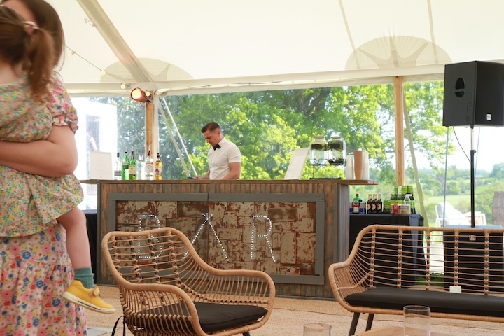 First impressions matter! The entrance to your marquee sets the tone for the entire day. Line the walkway with flowers, lanterns, or even festoon lights to create an inviting atmosphere. A personalised welcome sign is a lovely touch—whether it’s a simple chalkboard with hand-lettering or a more elaborate floral arch. You could also create a cosy seating area near the entrance with a few benches or quirky props that reflect your style. These also create the perfect backdrop for guests to take photos.